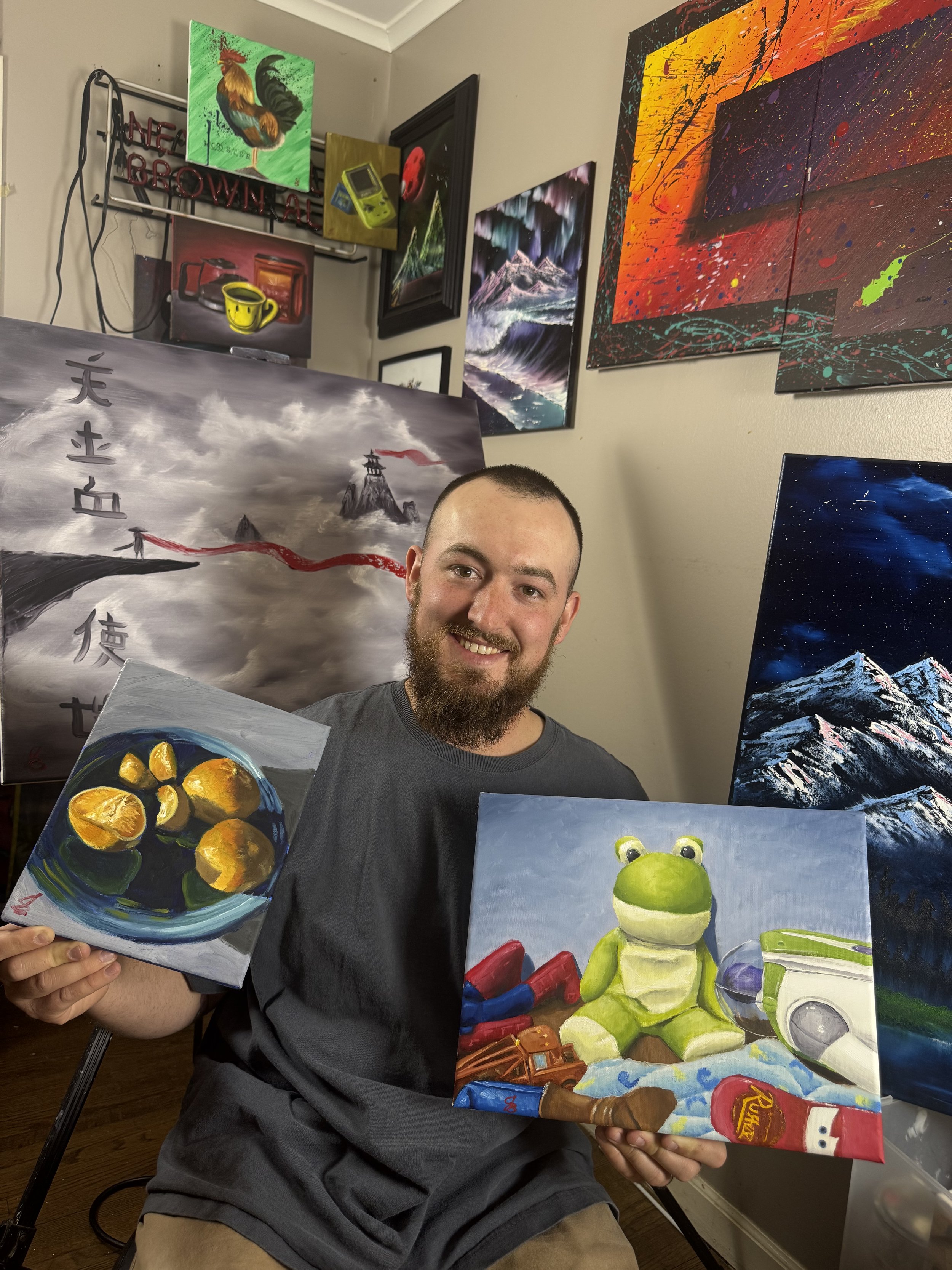 I Started Painting from watching Bob Ross and thinking “I can do that.” It turns out after lots of practice I could! I take inspiration from my own life and many other artists works I come across. I have learned the most from Bob Ross, Paint with Josh, and Paint Coach. I have a lot to learn but I am proud of how far I have come. Whether you are here to purchase or here to look I appreciate the interest and support!